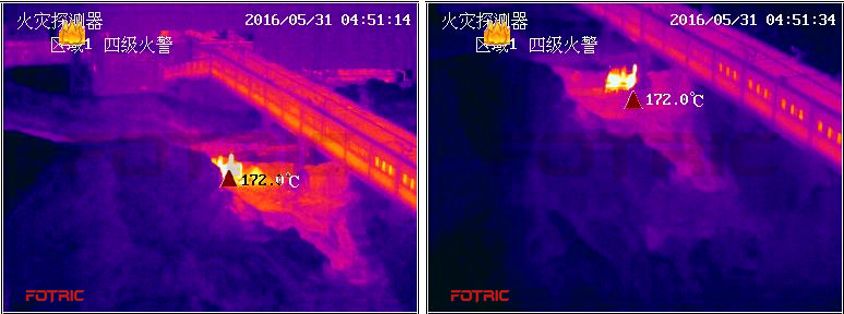 2016年5月,山西某煤仓局部区域发生煤炭阴燃。肉眼无察觉,但FOTRIC防火报警智能热像检测到表面温度异常,并向绑定的终端发出告警消息,煤场发现温度异常及时触发喷水处理,为抢救争取到10-12小时,极早排除了隐患。