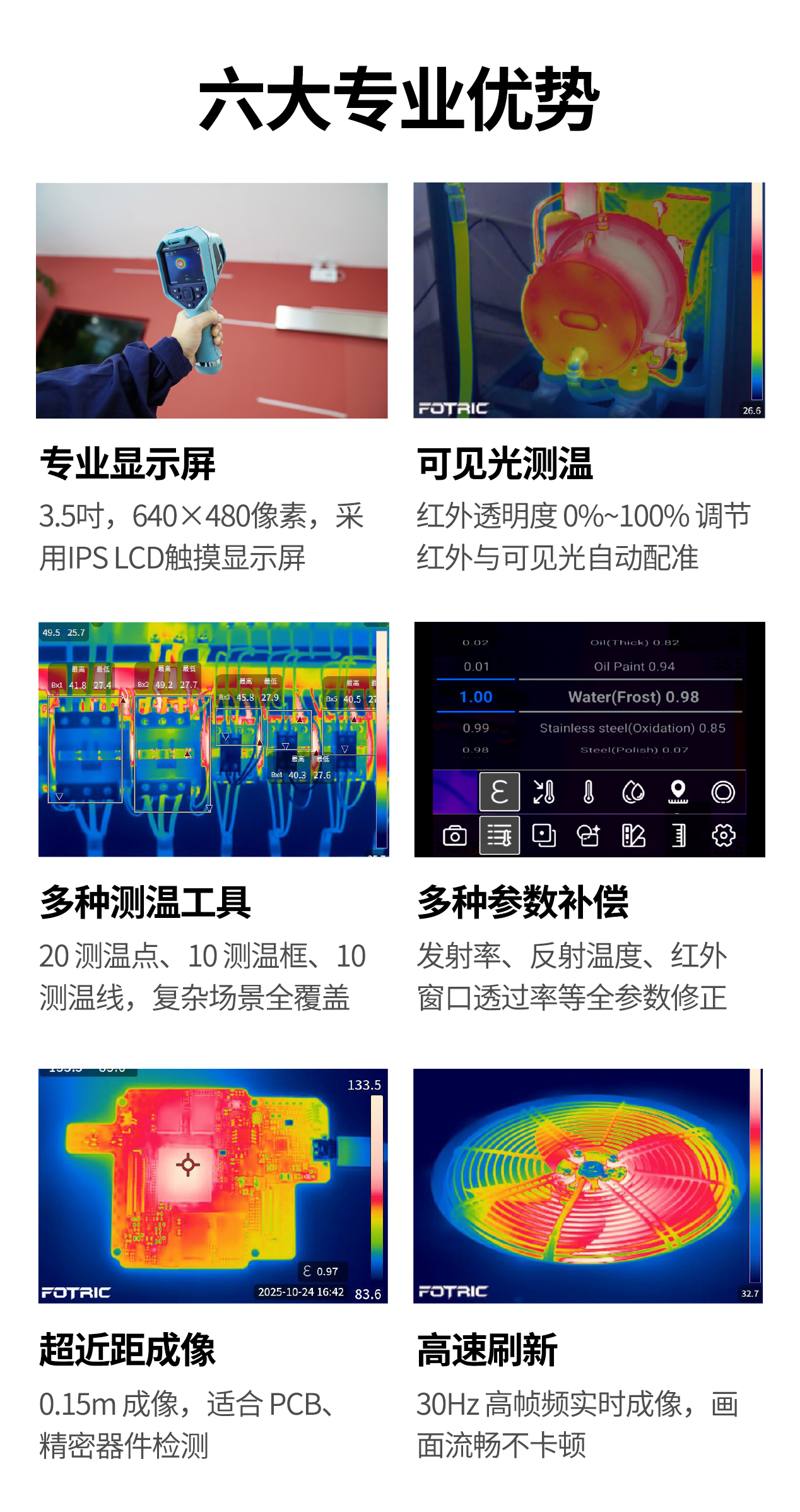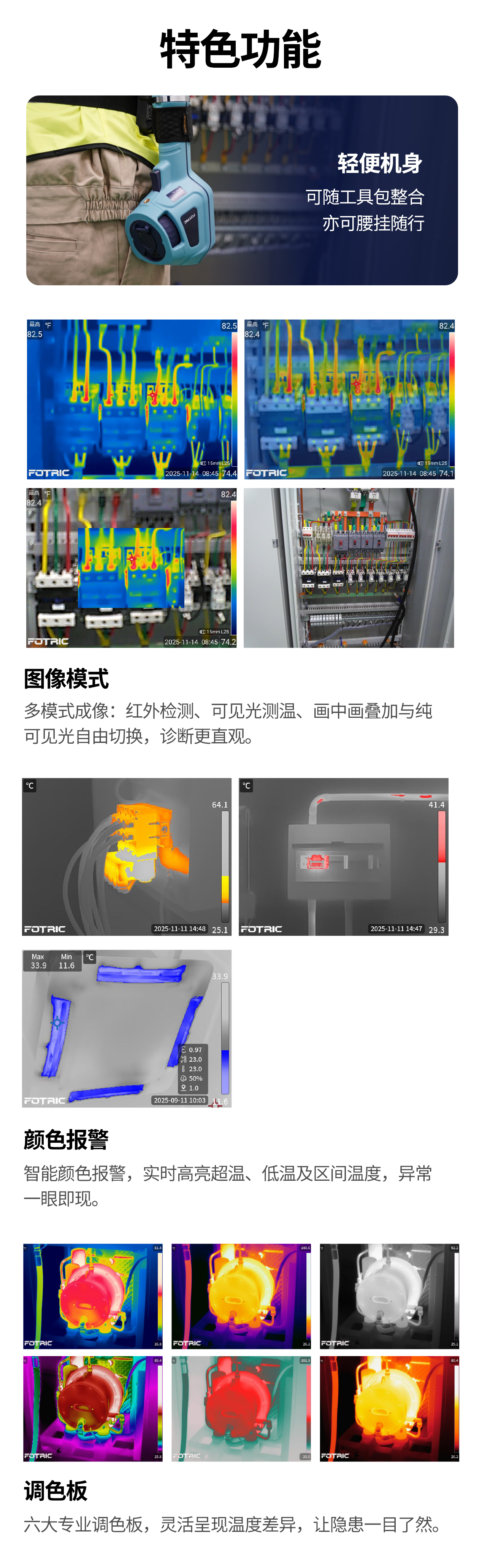 红外图像、可见光测温(T-DEF?)、画中画、可见光